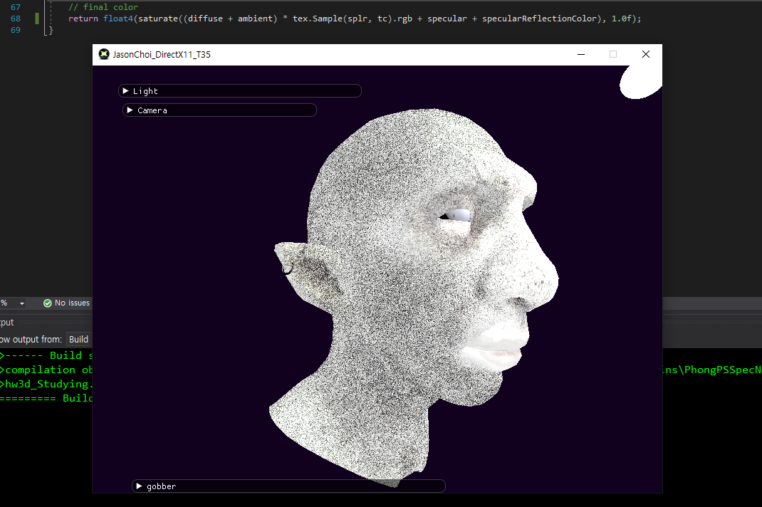 Diffuse, Normal, Specular 샘플 파일들이 적절히 어우러진 결과가 나와야 하는데, Specular 샘플만 나오고 있다