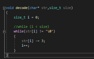 아래 decode 함수에서 str[i] != '\0' 이 원인 이었음