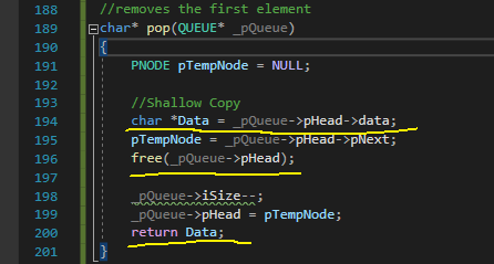 C언어, Queue, pop() 구현하던 도중 shallow copy와